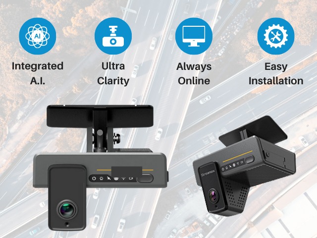 Optional cab-facing cameras are available and can be configured with or without audio based on fleet policy.